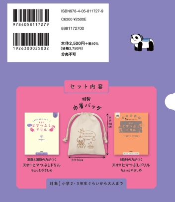天才!!ヒマつぶしドリル 算・国&5教科”ちょっとやさしめ”[2冊セット]巾着バッグ付き